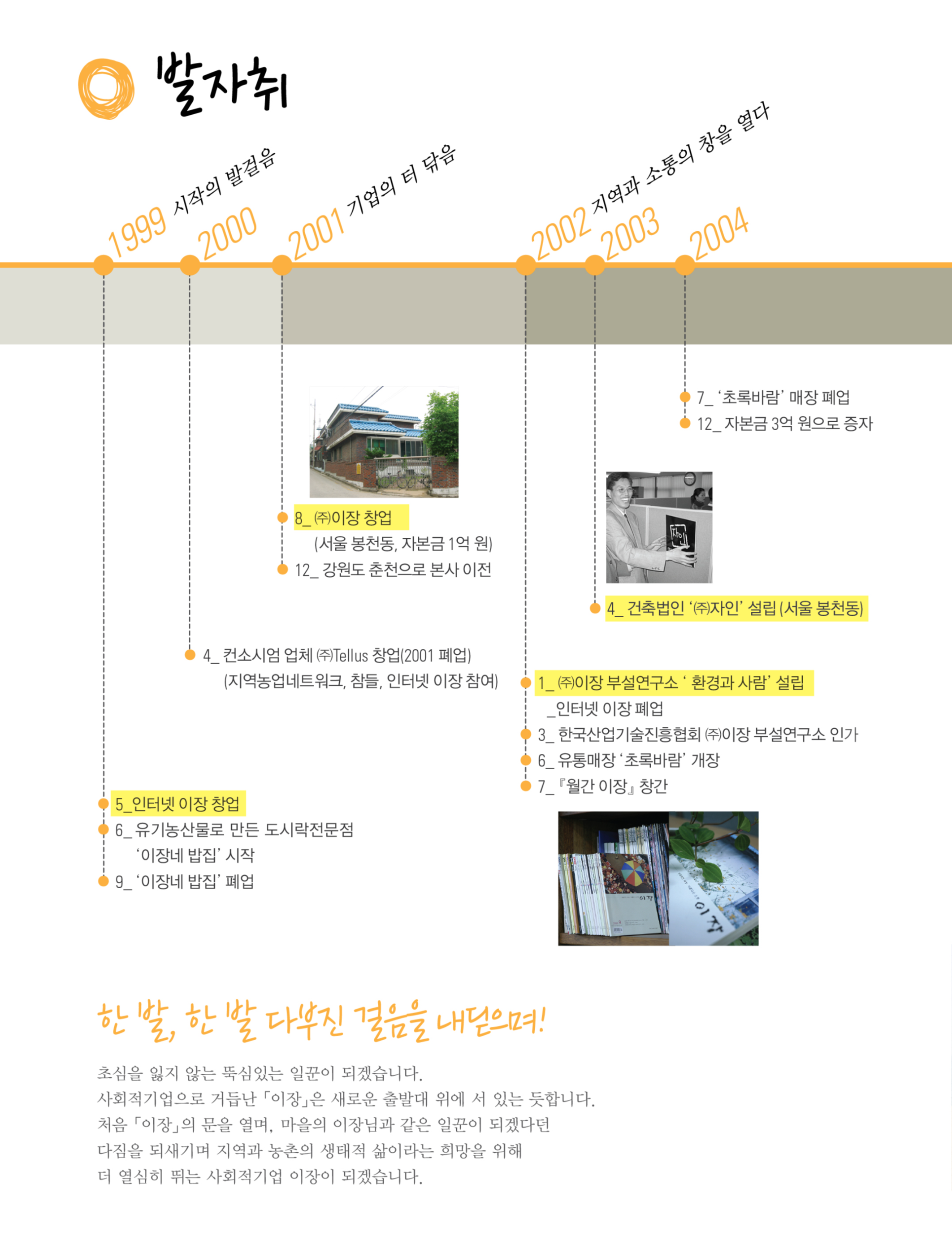 2000년 생태적 삶을 지향하는 회사, 일과 삶이 하나가 되는 회사로 강원도 춘천에서 시작한 주식회사 이장의 가치를