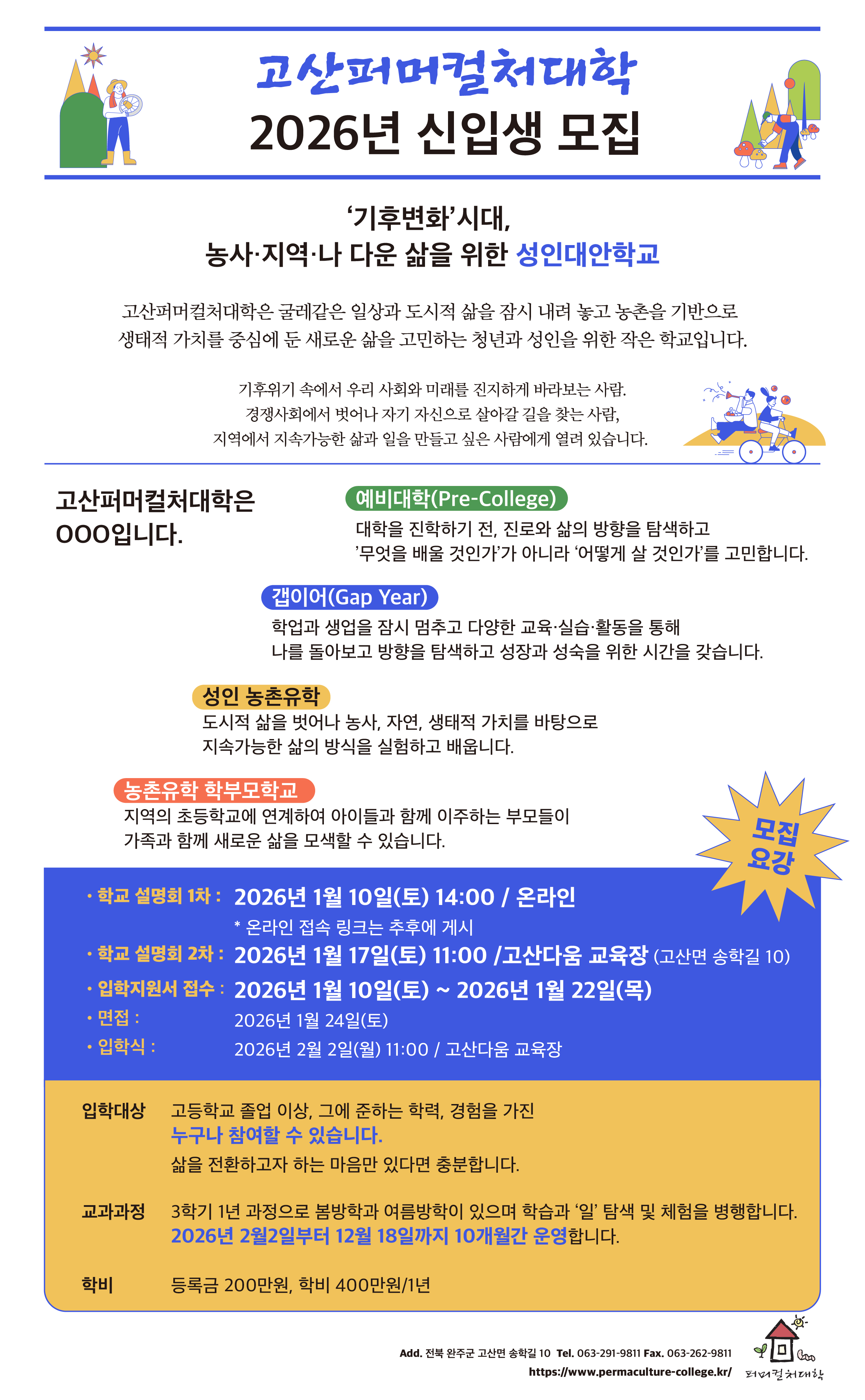 2026년 고산퍼머컬처대학 신입생 모집
